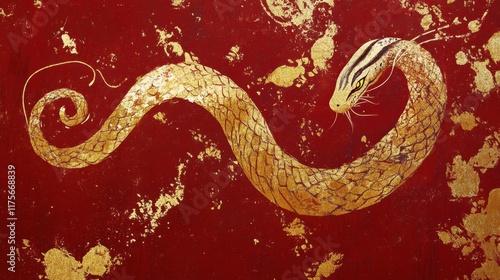© Alicea, Obraz premium Elegant Calligraphy of the Snake in Shimmering Gold