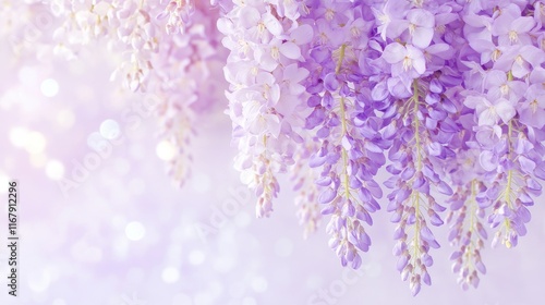Naklejka premium Elegant cascading wisteria in soft pastel tones with a dreamy bokeh background