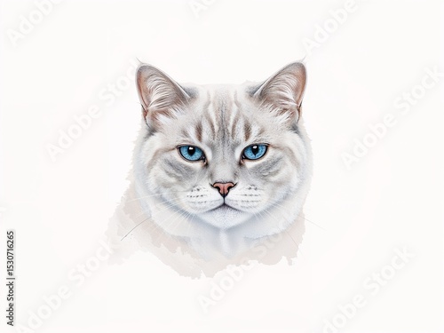 © Volodymyr Hankevych, Fototapeta premium Elegant Cat Portrait with Striking Blue Eyes on White Background