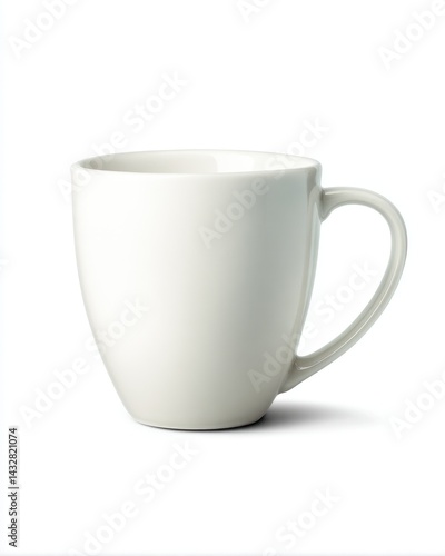 © Aether Pixels, Obraz premium Elegant ceramic mug on a clean white backdrop showcasing its smooth texture and simple design for coffee or tea in a minimalist kitchen or office setting