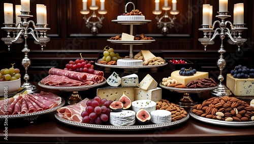 Fototapeta premium Elegant Cheese and Charcuterie Board A Gourmet Food Spread