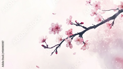 Naklejka premium Elegant Cherry Blossom Branch in Soft Colors