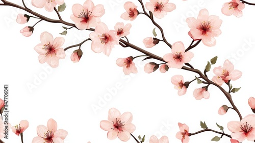 © Passakorn, Fototapeta premium Elegant Cherry Blossom Pattern on White Background