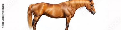 Obraz premium Elegant chestnut horse, standing alone, white backdrop, full body, detailed...