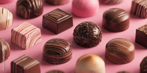 © Inna, Obraz premium Elegant Chocolate Bonbons Arranged Neatly on Pink Background