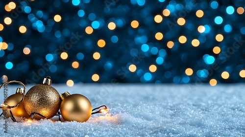 © Thaweechai, Fototapeta premium Elegant Christmas Baubles on Snowy Background