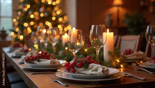 © SwathiFX, Naklejka premium Elegant Christmas feast setting ready for a festive celebration