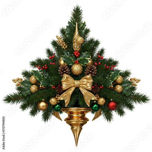 © Muzamil, Fototapeta premium Elegant Christmas garland with gold bow and ornaments