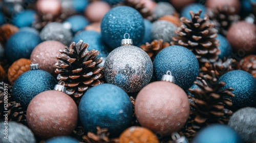© Narongsag, Obraz premium Elegant Christmas Ornament Pinecone Flatlay Festive Holiday Background