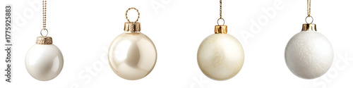 Fototapeta premium Elegant Christmas Ornaments: Collection of White Pearl Baubles
