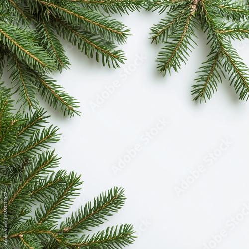 Obraz premium Elegant Christmas Tree Branches Framed by Simple Plain Background christmas...