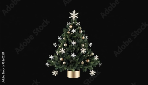 Obraz premium Elegant Christmas tree with gold ornaments and snowflakes