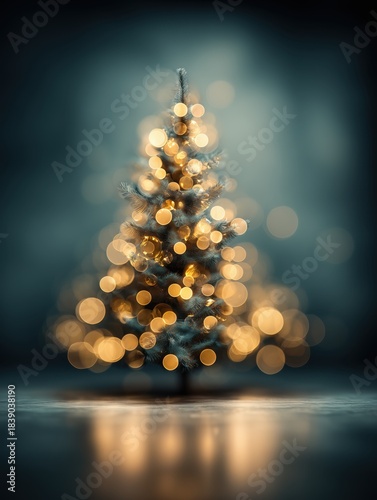 © vimart, Fototapeta premium Elegant Christmas Tree with Golden Lights and Cinematic Bokeh