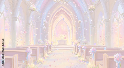 Obraz premium Elegant Church Interior with Floral Decorations and Soft Pastel Lighting