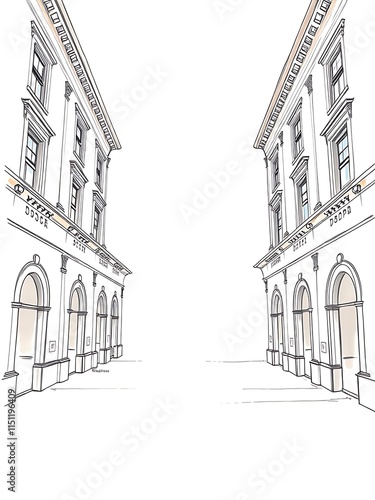 © heinng, Fototapeta premium Elegant City Street Sketch: Minimalist Hand-Drawn Illustration. AI Generated