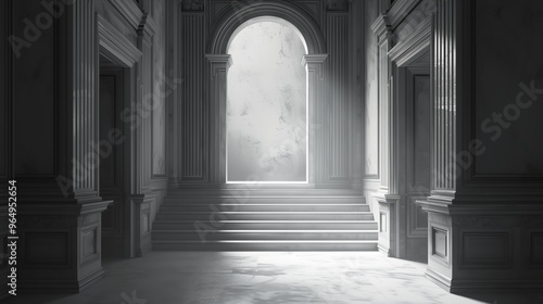 Fototapeta premium Elegant Classic Architecture with Grand Staircase and Sunlight - Perfect for...