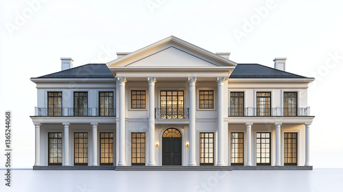 Fototapeta premium Elegant classic house with columns and large windows on white background