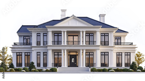 Fototapeta premium Elegant classic house with columns and large windows on white background