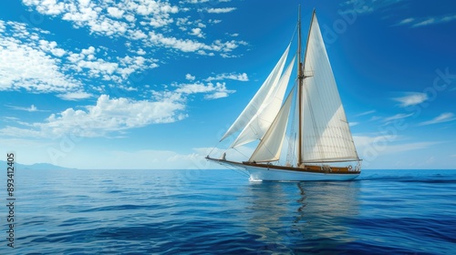 Fototapeta premium Elegant Classic Yacht Sailing Through Calm Waters