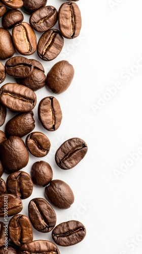 Naklejka premium Elegant Close-Up Image of Freshly Roasted Coffee Beans on a Minimalist...