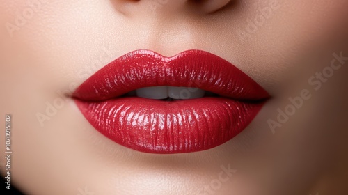 Obraz premium Elegant close-up of beautiful female lips showcasing a natural glossy finish...