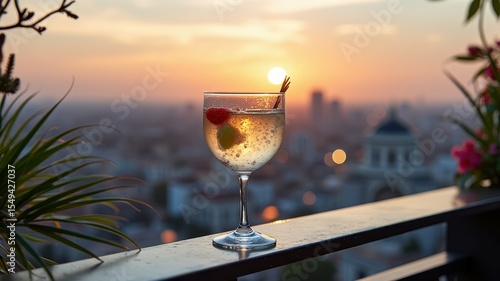 Obraz premium Elegant cocktail with sunset view on urban balcony