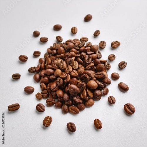 Naklejka premium Elegant Coffee Beans Arrangement – Scattered Roasted Beans on White...