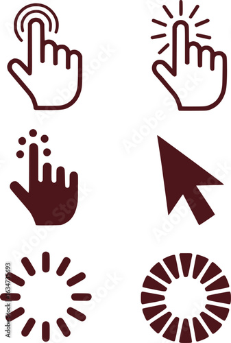 Fototapeta premium Elegant Collection of User Interface Icons Representing Touch Gestures, Loading Animations, and Standard Mouse Pointer for Digital Devices and Software Applications