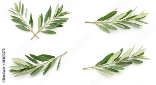© Firman Dasmir, Fototapeta premium Elegant composition featuring olive branches against a pristine white backdrop