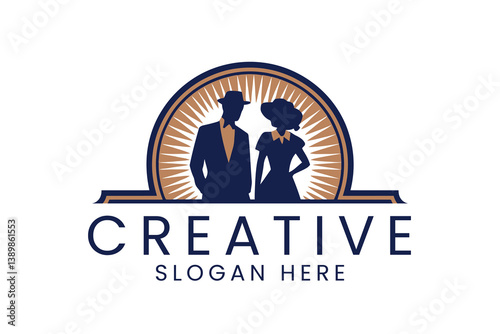 © ahmadfarazswl, Obraz premium Elegant Couple Vintage Retro Style Logo Design man art icon gold blue dark woman