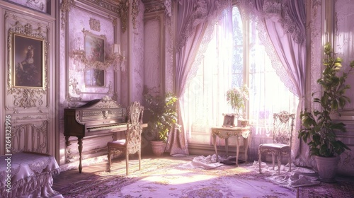 © Jakkarin, Obraz premium Elegant Cozy Boudoir with Lace Curtains and Natural Light