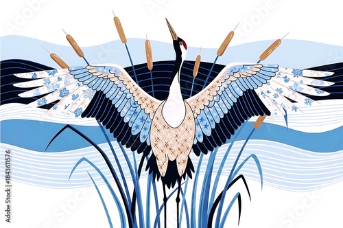 Fototapeta premium Elegant crane illustration ideal for serene nature artwork and decorative design projects