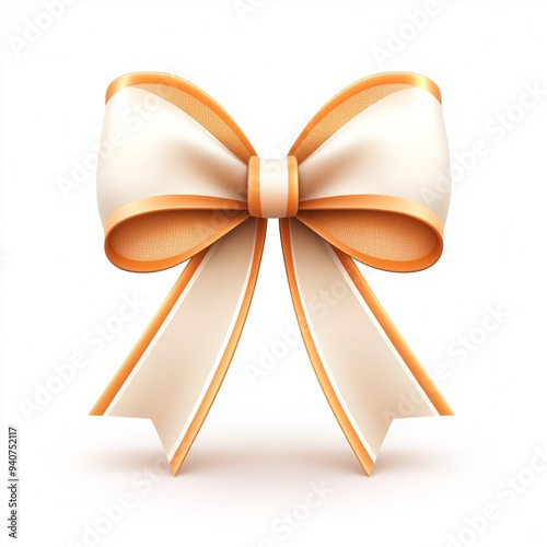 © Preeyanuch, Naklejka premium Elegant cream and orange bow ribbon with smooth texture, perfect for gift wrapping, decoration, or special occasions. High-resolution stock photo.