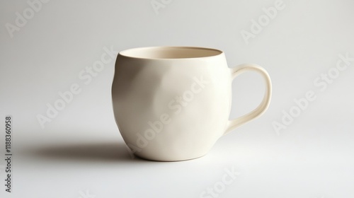 © Suesong, Fototapeta premium Elegant Cream Colored Ceramic Mug Textured Design Modern Kitchenware Studio Shot