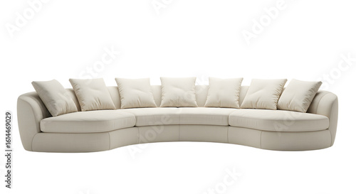 © nida sofiah, Obraz premium Elegant Cream Curved Sofa with Cushions for Modern Living Room Decor