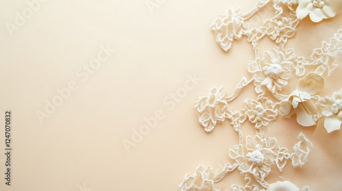 © suyadi, Obraz premium Elegant Cream Lace Floral Design on Beige Background