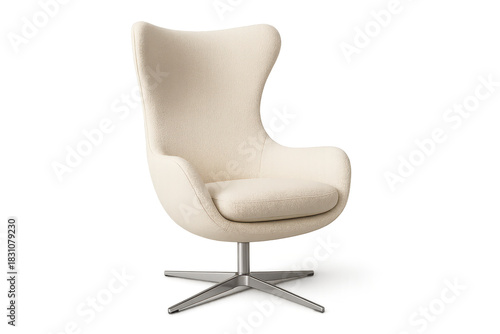 © whitestorm, Naklejka premium Elegant cream modern armchair isolated on transparent background, contemporary design.