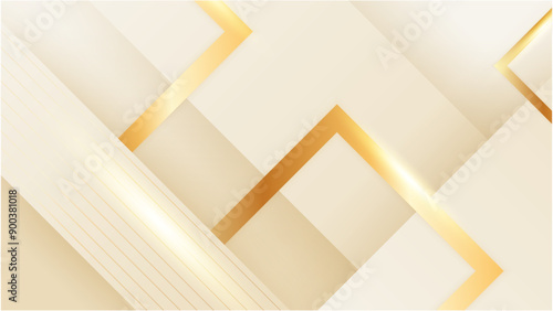 © Ok_pro, Obraz premium Elegant cream shade background with line golden elements