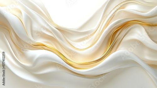© Ruqqq, Obraz premium Elegant cream silk waves, golden highlights, abstract background, luxury texture.