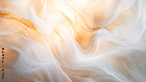 © Tahsin, Obraz premium Elegant Creamy White Silk Fabric Texture Background Soft Draped Flowing Sheer Light Pastel Gold