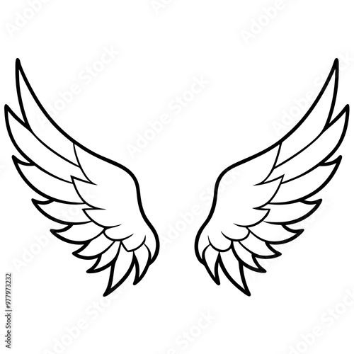 Fototapeta premium Elegant Curved Angel Wings - Detailed Vector Art