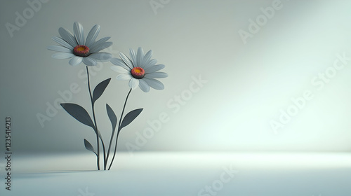 © studio, Naklejka premium Elegant 3D Render of Two Daisies in a Minimalist Setting