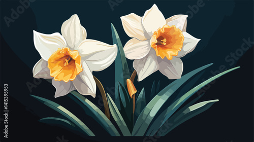 © Leo, Naklejka premium Elegant Daffodils on Dark Background - Vector Illustration