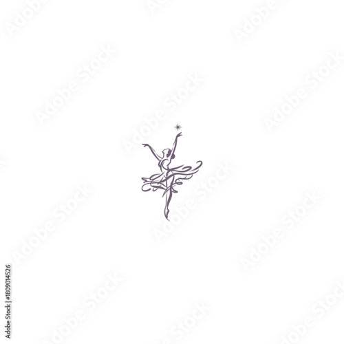 © kucret, Fototapeta premium Elegant dancer silhouette reaching upwards with star symbol isolated