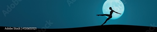 © Sangsung, Naklejka premium Elegant dancer silhouette under a full moon