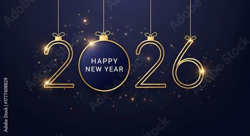 © Muzamil, Naklejka premium Elegant Dark Blue 2026 Happy New Year Greeting