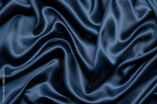 Obraz premium Elegant dark blue satin fabric with smooth, silky texture and luxurious drape, perfect for backgrounds and design projects, conveying richness and sophistication.