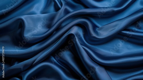 Obraz premium Elegant dark blue silk fabric texture creates a luxurious backdrop, perfect for showcasing design and craftsmanship.