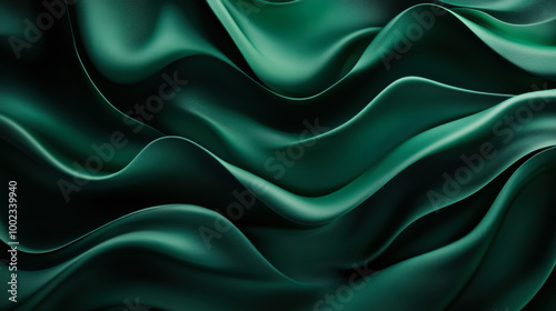 Obraz premium Elegant dark green fabric drapes flowing gracefully under soft light in a...