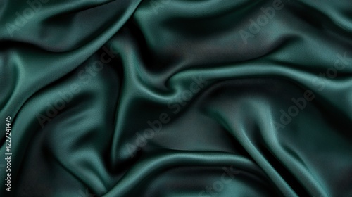 Obraz premium Elegant Dark Green Satin Fabric Texture with Soft Waves and Smooth Drapery...
